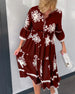 Lässiges Kleid mit V-Ausschnitt und Retro-Print