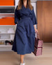 Kleid mit langen Ärmeln und Tasche im Farbblockdesign