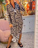 Kleid mit 3/4-Ärmeln und geometrischem Boho-Print