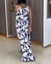 Elegantes bedrucktes Kleid mit V-Ausschnitt und Krawatte