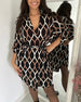 Lockeres kleid mit V-ausschnitt und leopardenmuster