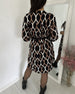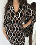 Elegantes bedrucktes Kleid mit V-Ausschnitt und Krawatte