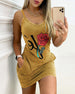 Lässiges Kleid mit V-Ausschnitt und Retro-Print