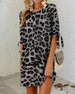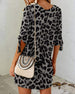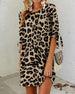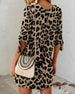 Lockeres kleid mit V-ausschnitt und leopardenmuster