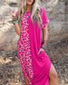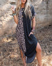 Lockeres kleid mit V-ausschnitt und leopardenmuster