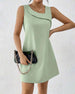 Elegantes, plissiertes Kleid in Volltonfarbe mit Rundhalsausschnitt