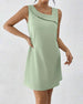Freizeitkleid mit Rundhalsausschnitt, einfarbig und plissiert