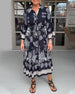 Elegantes bedrucktes Kleid mit V-Ausschnitt und Krawatte