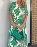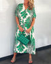 Kurzärmliges Schlitzkleid mit Blattmuster