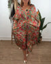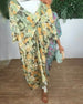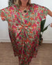 Kurzärmliges Schlitzkleid mit Blattmuster