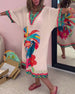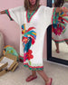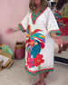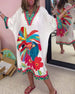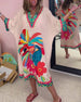 Kleid mit V-Ausschnitt und Graffiti-Druck