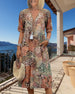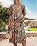 Lässiges Kleid mit V-Ausschnitt und Retro-Print