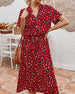 Elegantes bedrucktes Kleid mit V-Ausschnitt und Krawatte