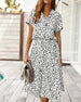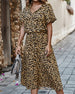 Lockeres kleid mit V-ausschnitt und leopardenmuster