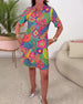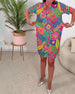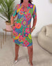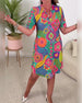 Bunt bedrucktes taschenkleid mit v-ausschnitt und halbarm