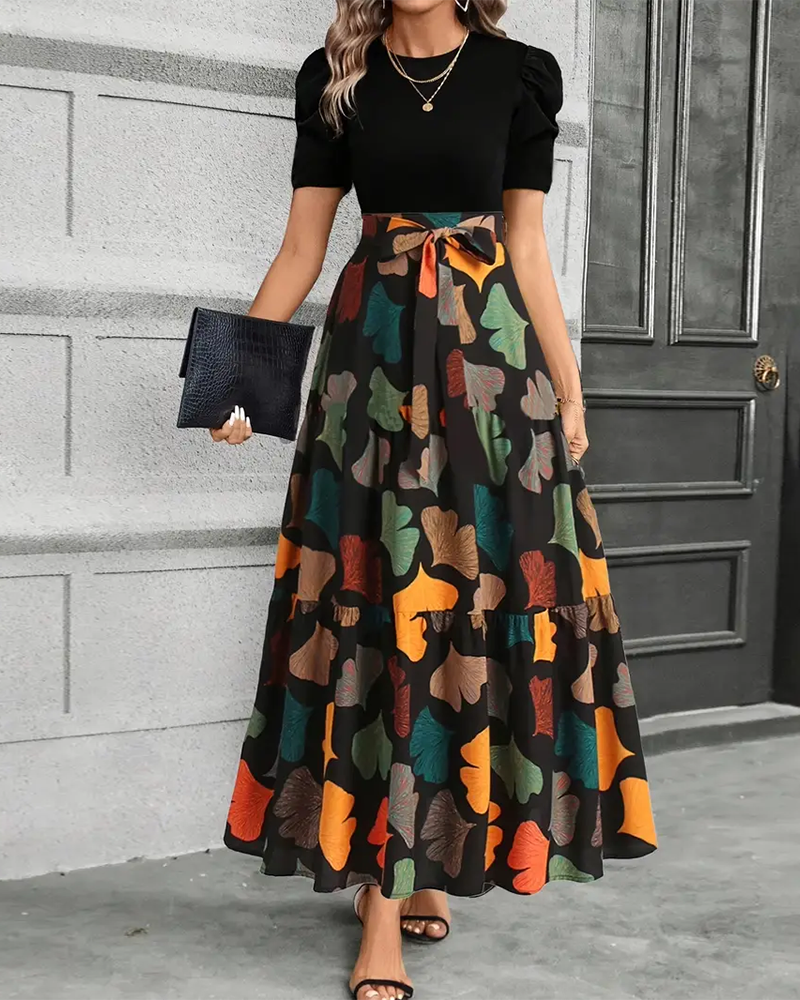 Lässiges bedrucktes Kleid mit kurzen Ärmeln