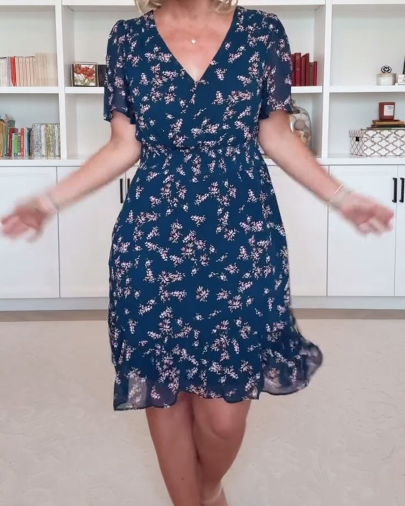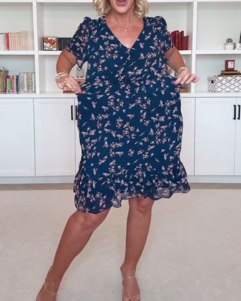 Lässiges bedrucktes Kleid mit kurzen Ärmeln
