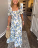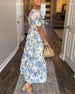 Kleid Quadratischer Ausschnitt Plissiert Blumen A-Linie