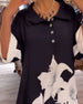 Kurzärmliges Schlitzkleid mit Blattmuster