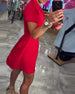 Kleid mode v-ausschnitt feste farbe nähte schlank