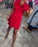 Einfarbiges, elegantes kleid mit rüschenärmeln und v-ausschnitt