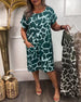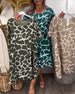 Lockeres kleid mit V-ausschnitt und leopardenmuster