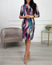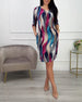 Bunt bedrucktes taschenkleid mit v-ausschnitt und halbarm
