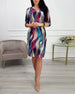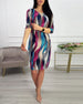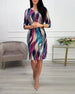 Elegantes bedrucktes Kleid mit V-Ausschnitt und Krawatte