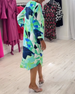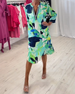 Kurzärmliges Schlitzkleid mit Blattmuster