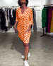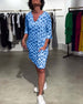 Lässiges Kleid mit V-Ausschnitt und Retro-Print