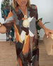 Elegantes bedrucktes Kleid mit V-Ausschnitt und Krawatte