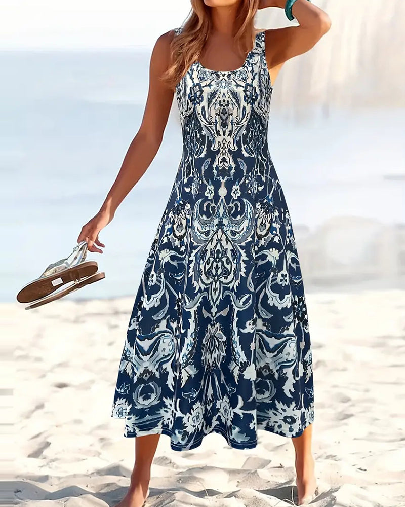 Lässiges Kleid mit V-Ausschnitt und Retro-Print
