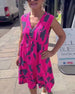 Lockeres kleid mit V-ausschnitt und leopardenmuster