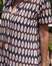 Kurzärmliges Schlitzkleid mit Blattmuster