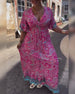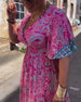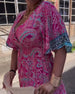 Bunt bedrucktes taschenkleid mit v-ausschnitt und halbarm