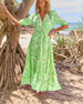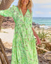 Kurzärmliges Schlitzkleid mit Blattmuster