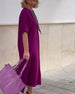 Einfarbiges kleid mit rundhalsausschnitt und langen ärmeln und tasche
