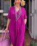 Lässiges Vintage-Kleid mit V-Ausschnitt