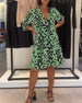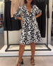 Elegantes bedrucktes Kleid mit V-Ausschnitt und Krawatte