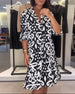 Lockeres kleid mit V-ausschnitt und leopardenmuster