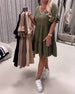 Kleid mode v-ausschnitt feste farbe nähte schlank