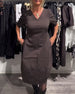 Kleid mit V-ausschnitt und taschen