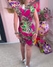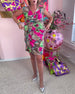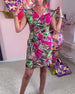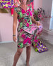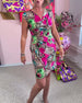 Bunt bedrucktes taschenkleid mit v-ausschnitt und halbarm