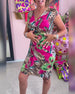 Elegantes bedrucktes Kleid mit V-Ausschnitt und Krawatte