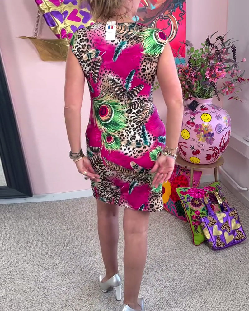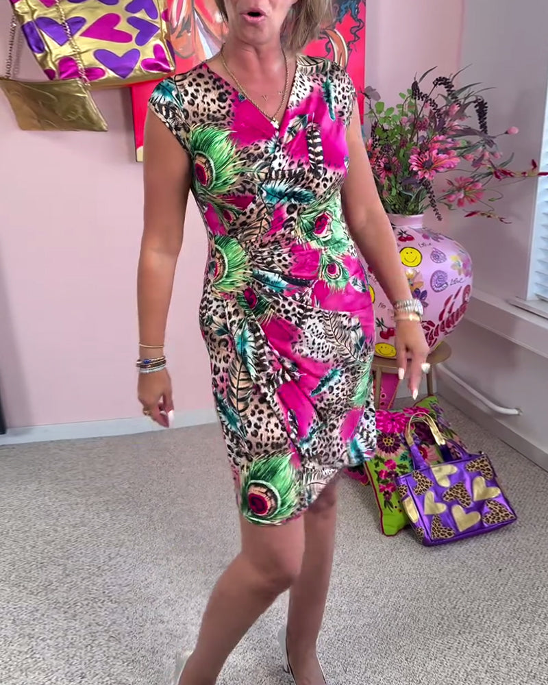 Lockeres kleid mit V-ausschnitt und leopardenmuster