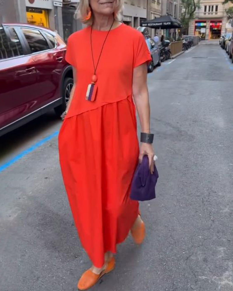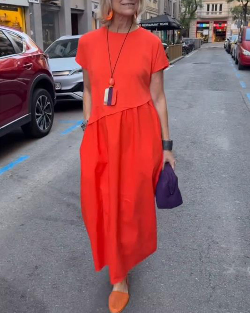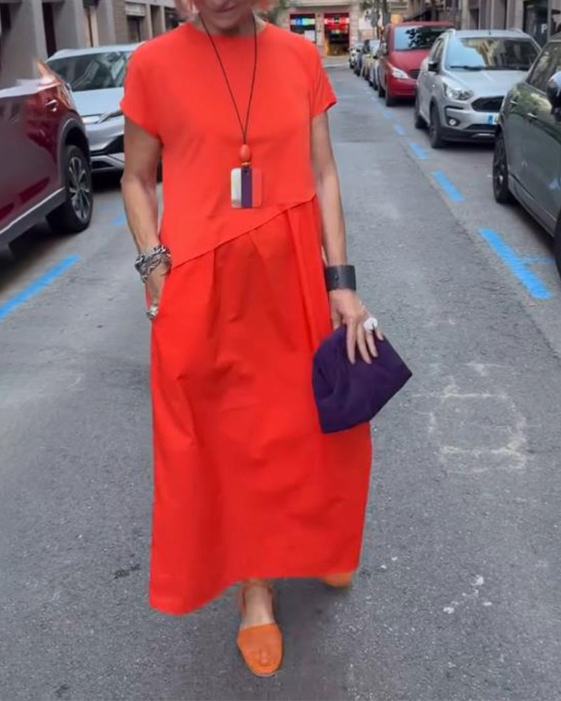 Kleid lässig Rundhals Schlitz Persönlichkeit Design