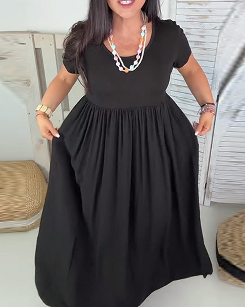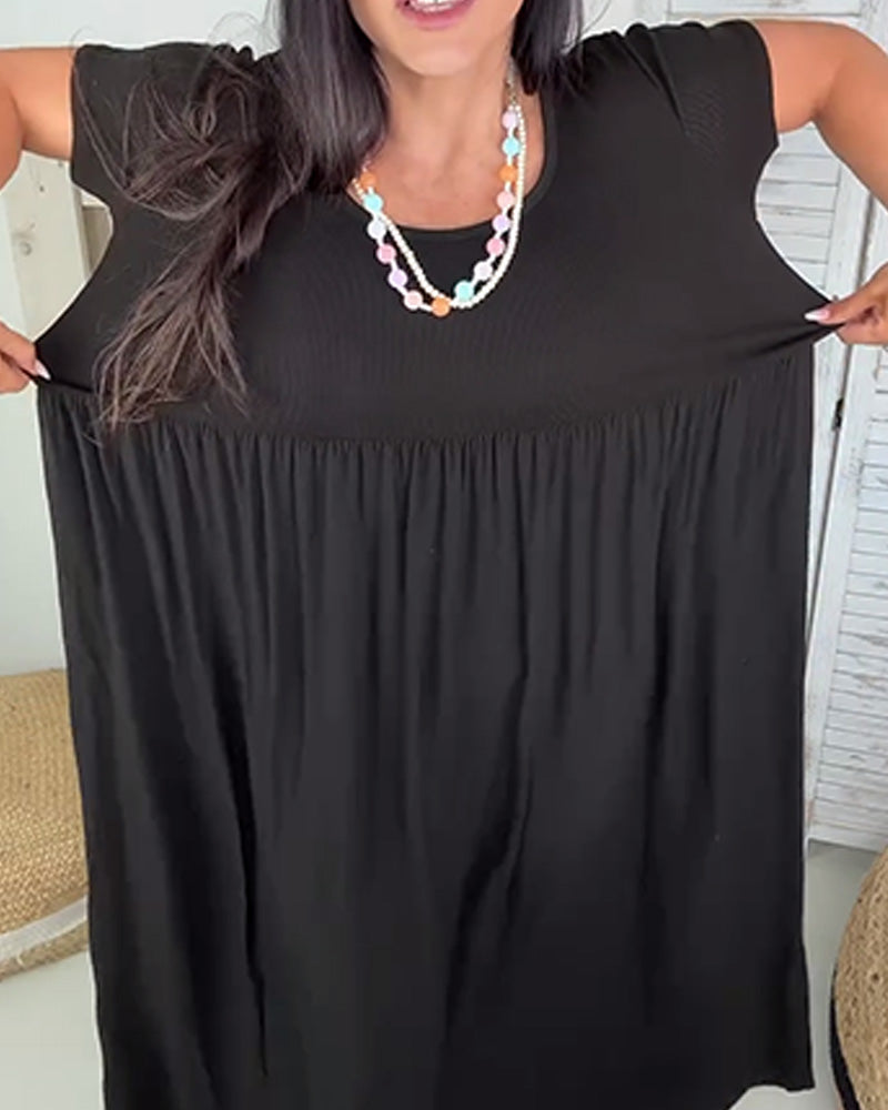 Freizeitkleid mit Rundhalsausschnitt, einfarbig und plissiert
