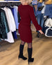 Einfarbiges kleid mit rundhalsausschnitt und langen ärmeln und tasche