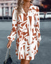 Modisches, langärmliges hüftkleid mit leopardenmuster