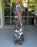 Lockeres kleid mit V-ausschnitt und leopardenmuster